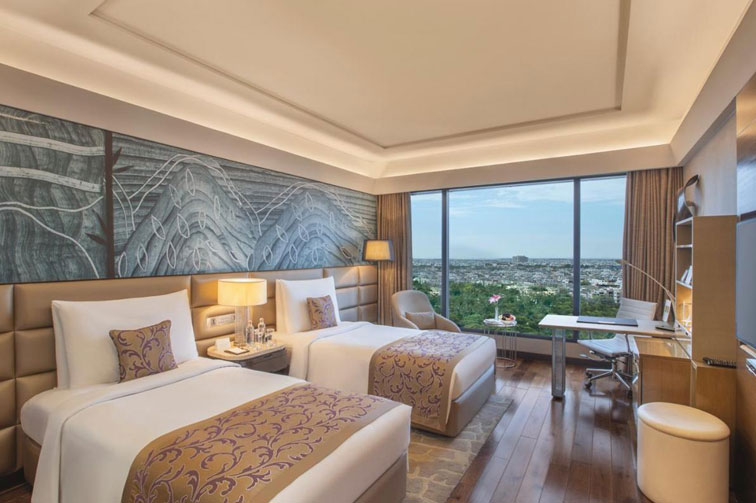 The Leela Ambiance Convention Hotel, Delhi hotel features contemporary rooms, fine dining options and a fitness center. It also has an outdoor swimming pool and a spa. Free private parking is available.